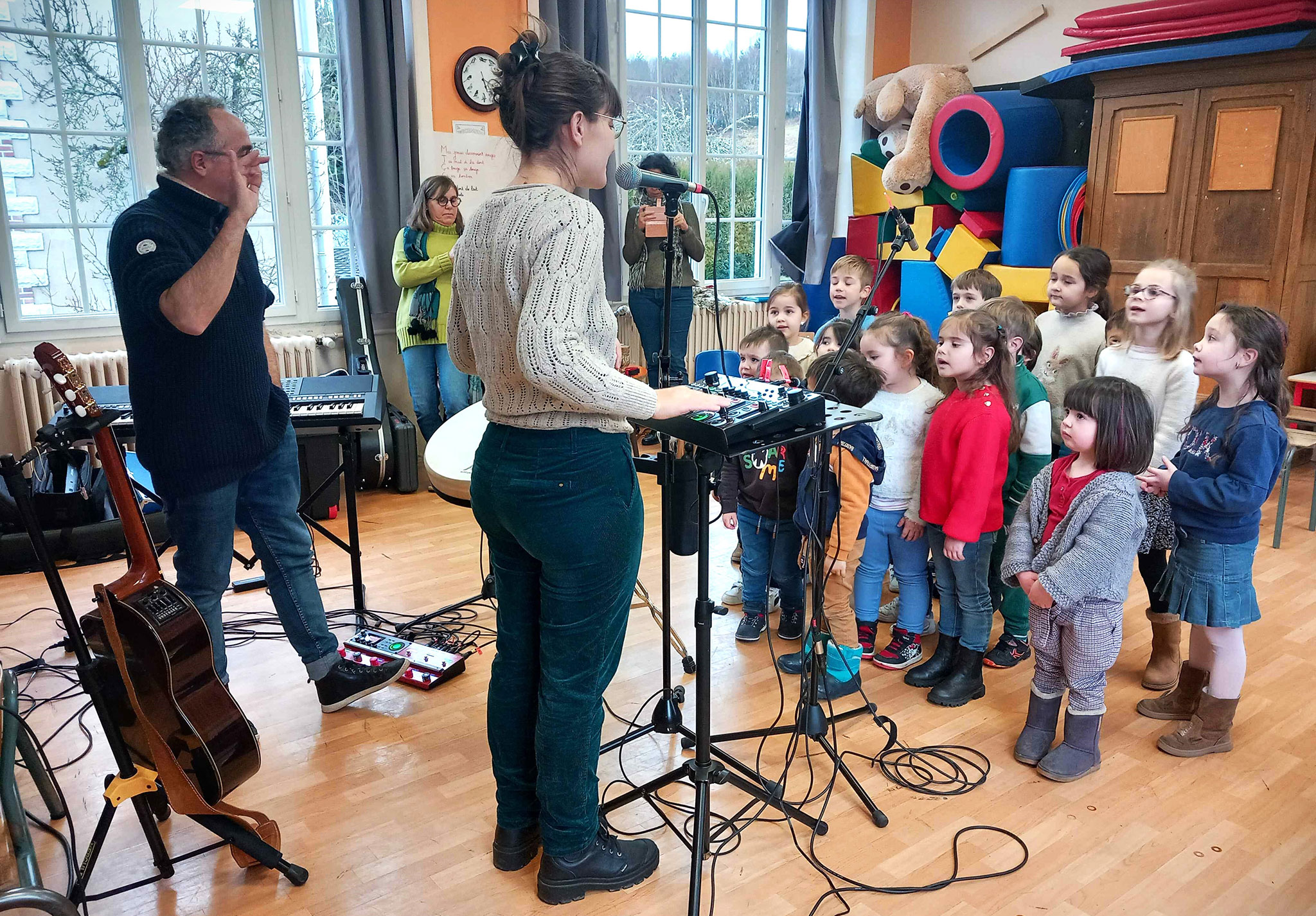 Enfin, les enfants chanteront. Aidés des deux artistes, ils feront des propositions, pourront s’enregistrer et travaillerons à interpréter leur production, à lui donner du corps et du sens.